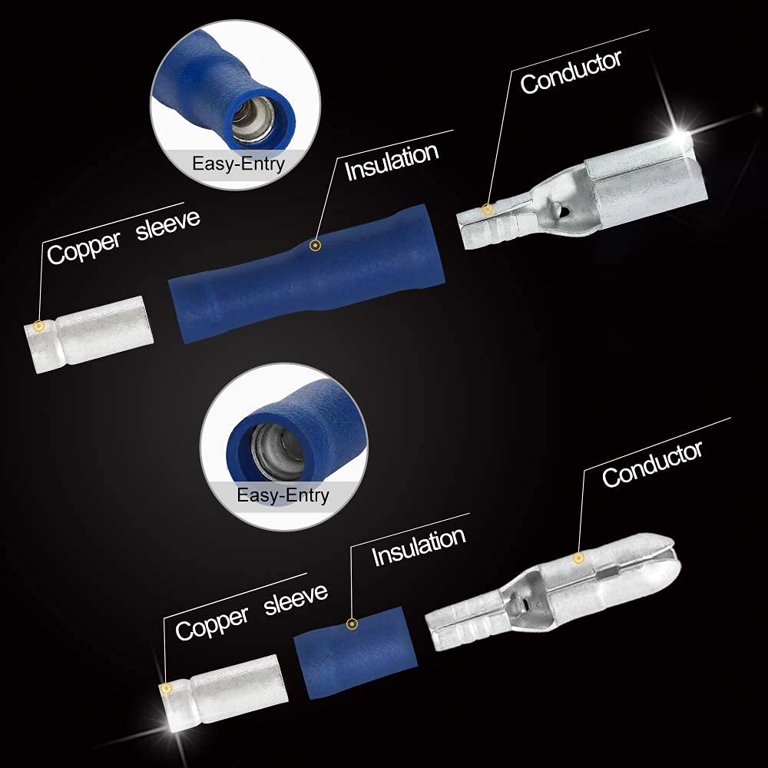 100pcs Bullet Connectors Male Female Kits 16 14awg Wire Connectors Blue Pvc Insulated Copper Core Quick Splice Bullet Butt Terminals Walmart Com